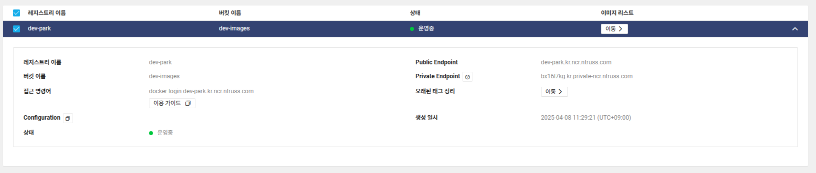 네이버 클라우드에서는 “Container Registry”를 이용하여 Private Registry 를 관리할 수 있다.