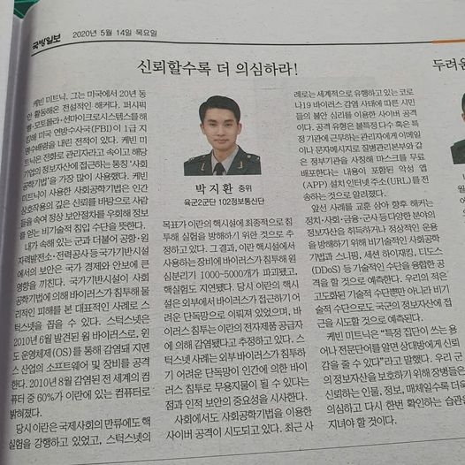 신뢰할수록 더 의심하라 ! (박지환 중위 / 국방일보 / 2020.05.14.)