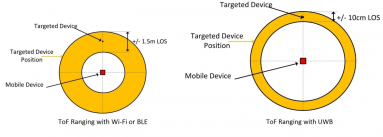 UWB는 Bluetooth에 비해 낮은 전력대비 높은 RSSI를 보이고, 높은 대역에서 빠른 송/수신 속도와 적은 주파수 간섭을 보였다. 또한 정현파를 이용하는 Bluetooth와 다르게 짧은 펄스를 이용하는 UWB는 정밀한 특성으로 ToF와 같은 송수신 시간차 삼각측량을 기반으로 한 기술에서 나노에서 피코 단위의 높은 속도에서 높은 정확도를 보인다. 현재로서는 UWB가 단점이 없어보이지만 현재 Bluetooth에 비해 UWB의 단가가 높기 때문에 단순 근거리 통신과 자료 전송을 하거나 실내 측위에서 많은 앵커를 요구하는 경우 Bluetooth가 효율이 높을 수 있다.