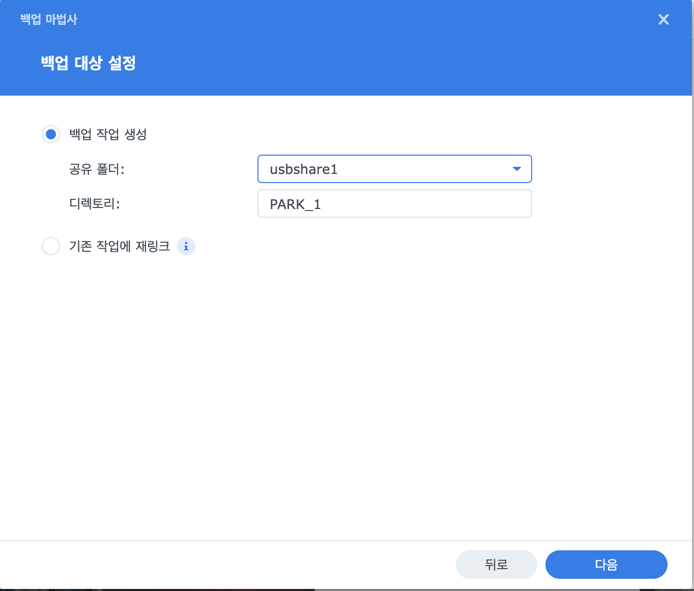 새로운 백업 작업을 생성하기 위해 아래의 아이콘을 클릭한다.