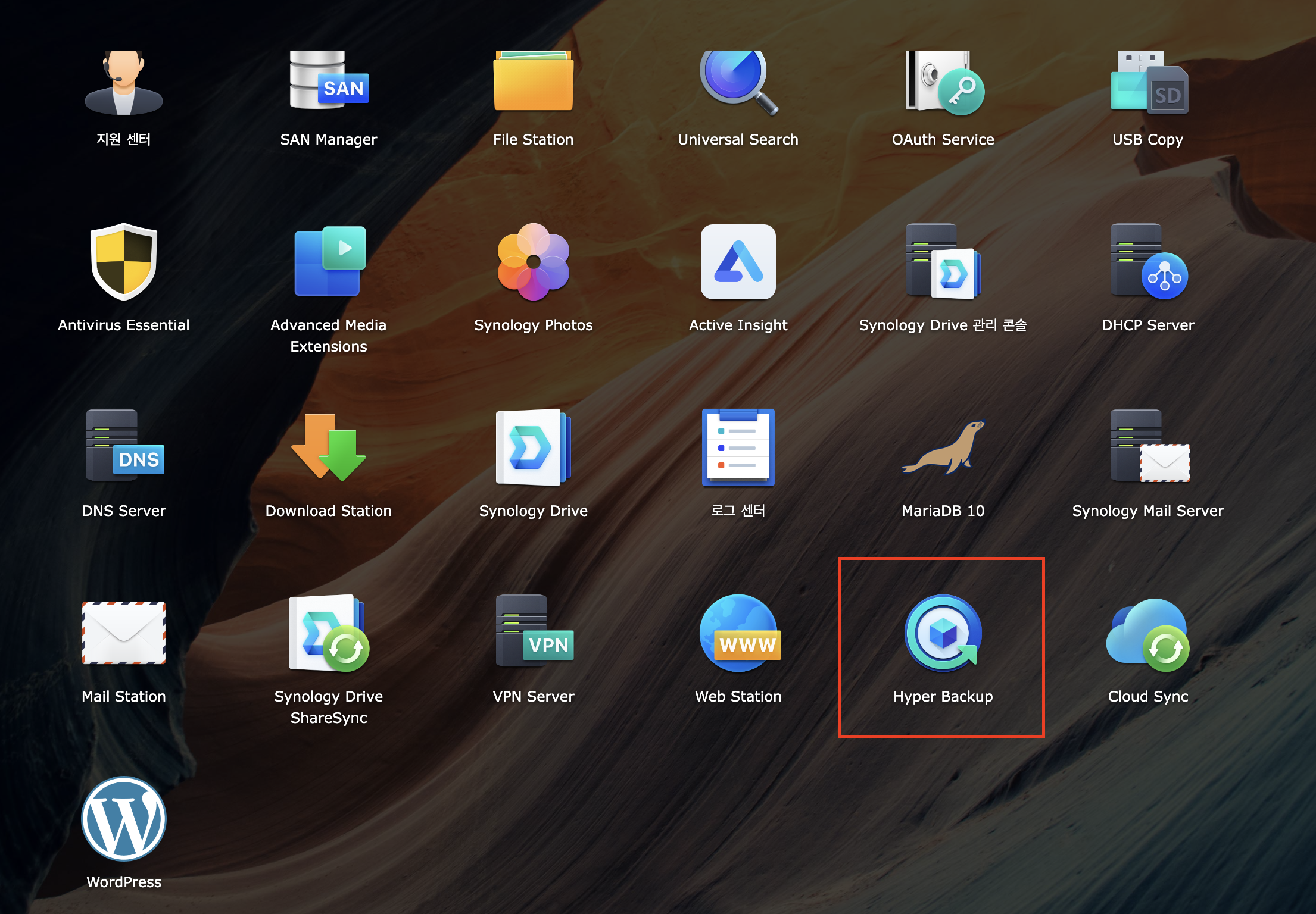 메인 메뉴에서 설치한 Hyper Backup을 실행한다.