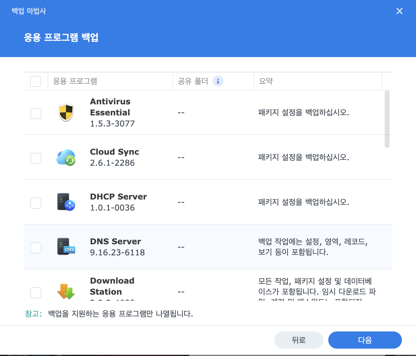 응용 프로그램 또한 백업 할 수 있는데 필자는 생략하였다.